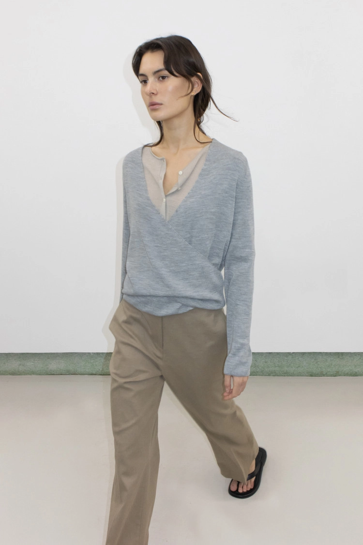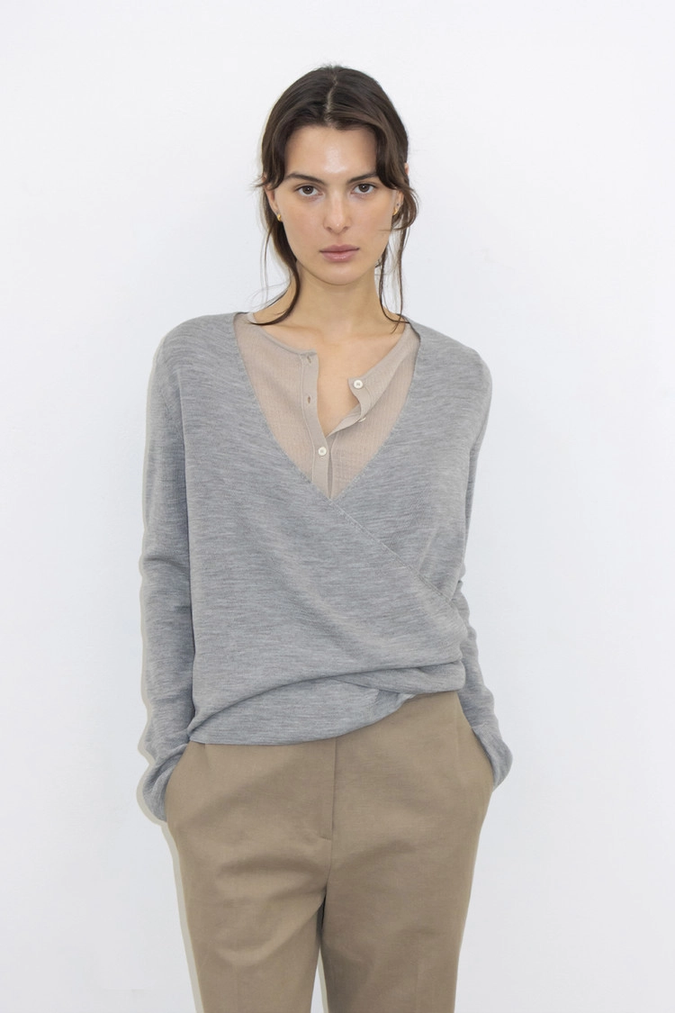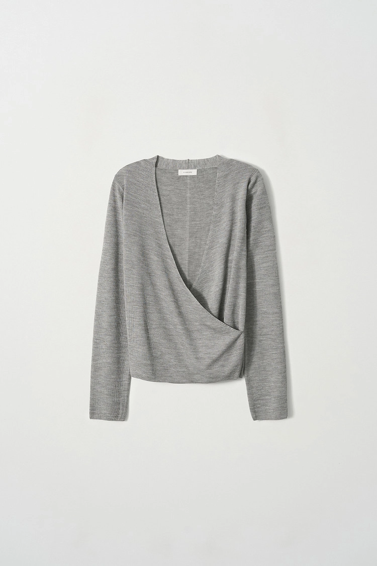 LIGHT WOOL WRAP KNIT TOP - HEATHER
