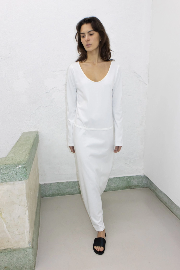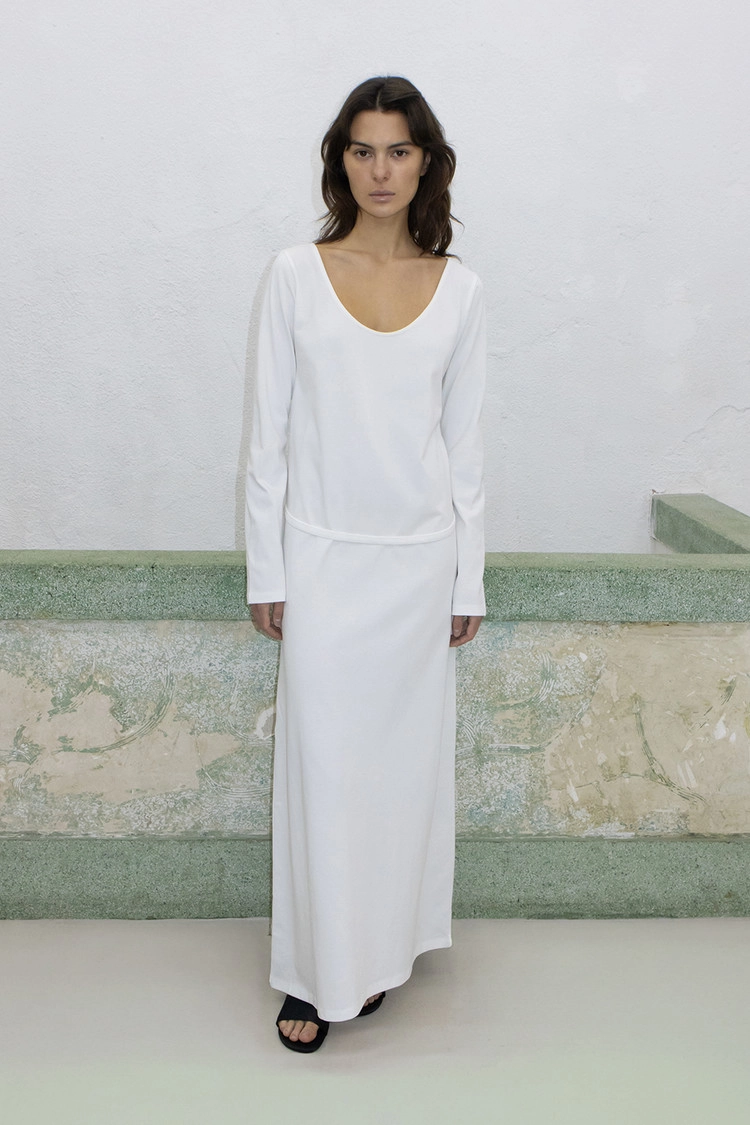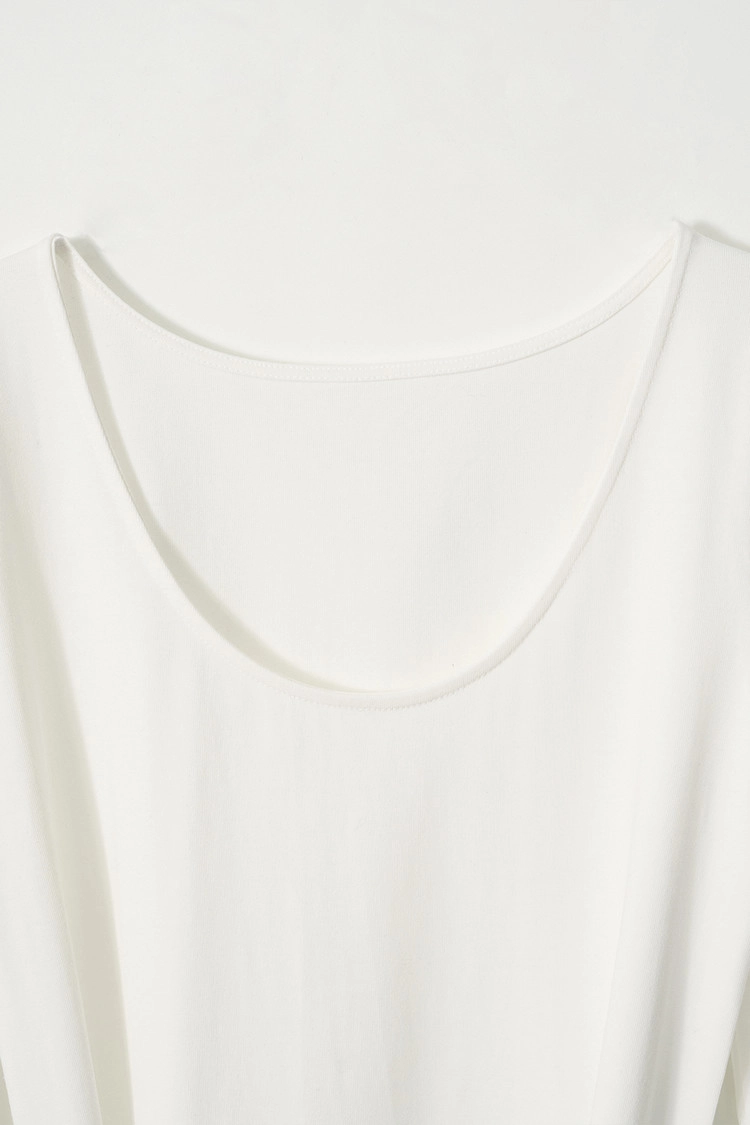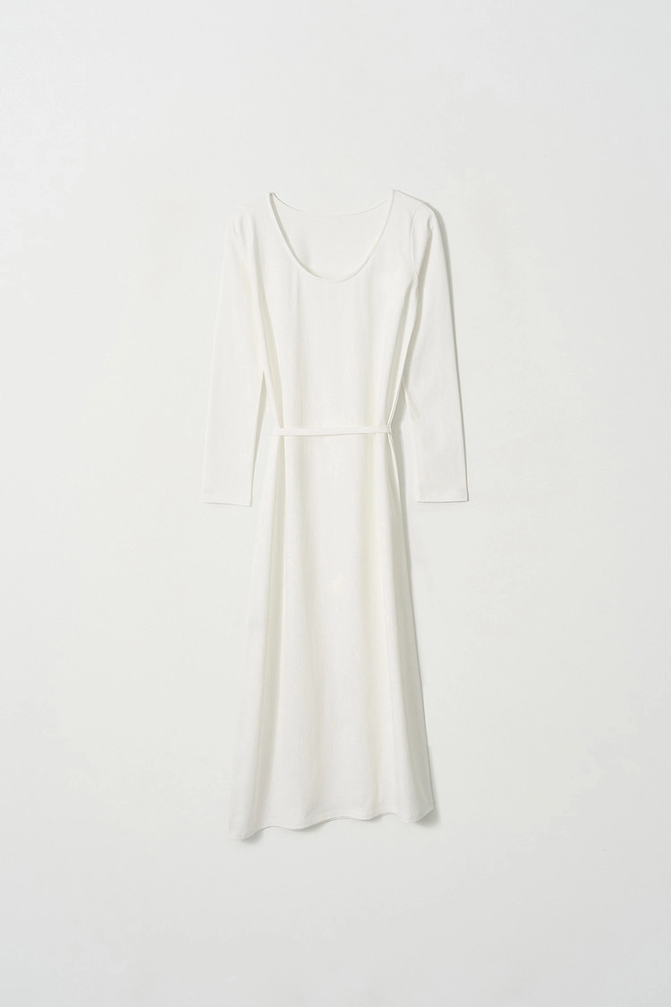 SCOOP-NECK BELTED JERSEY LONG DRESS - WHITE