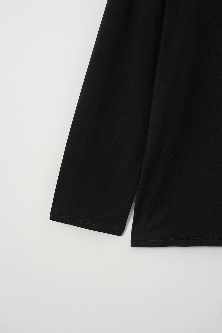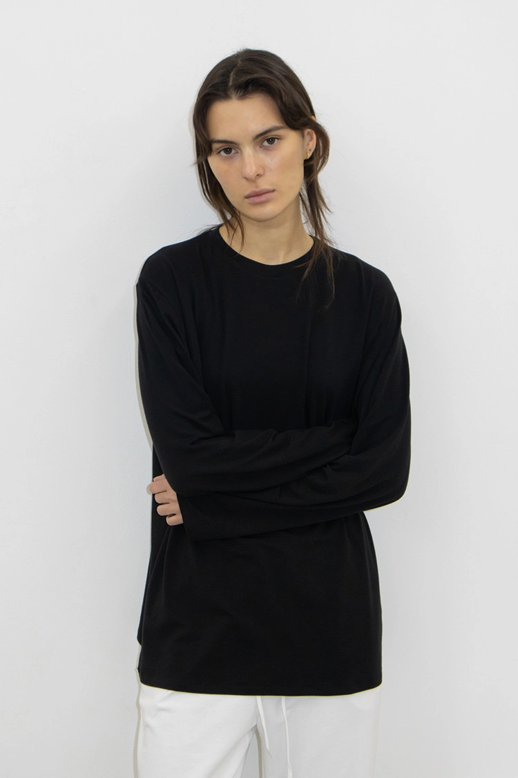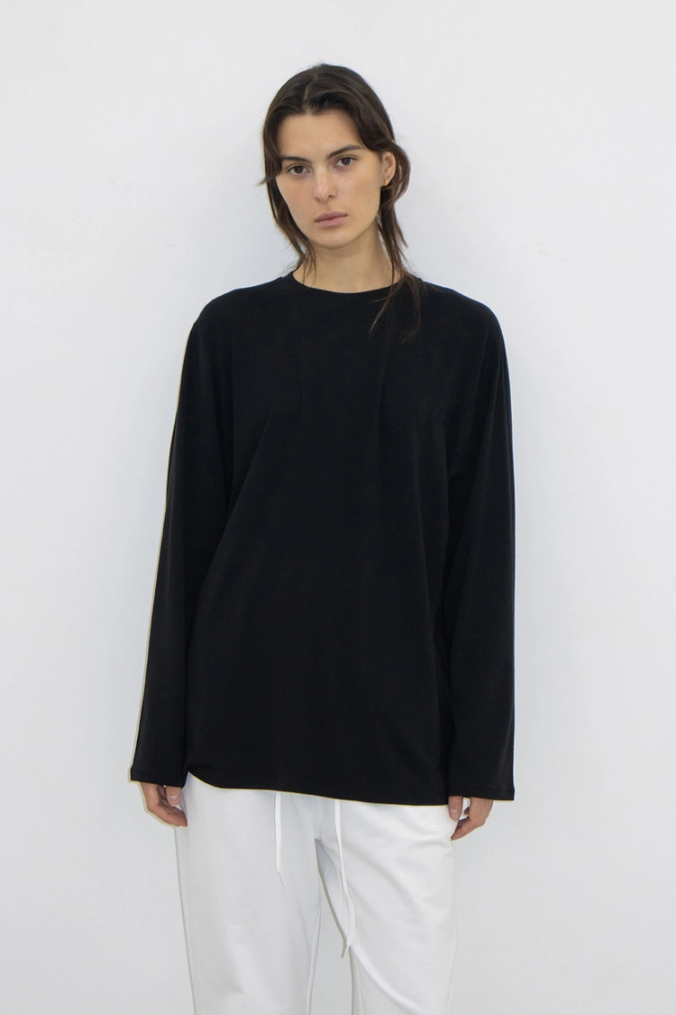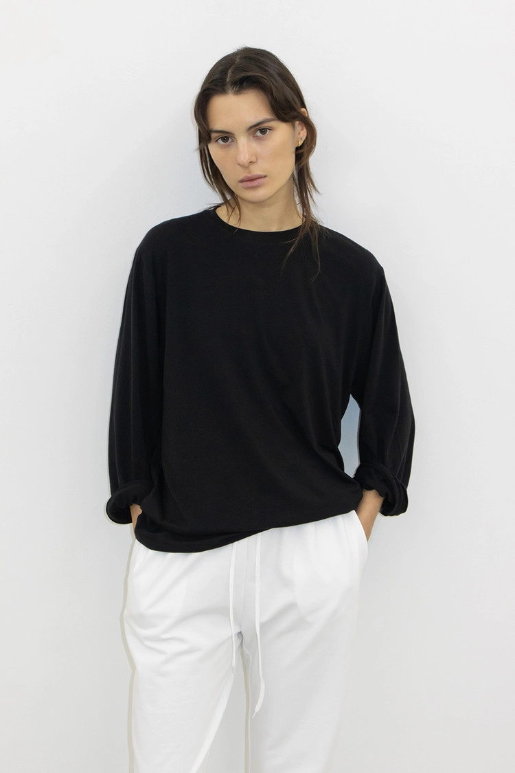 LONG SLEEVE BOYFRIEND JERSEY TOP - BLACK