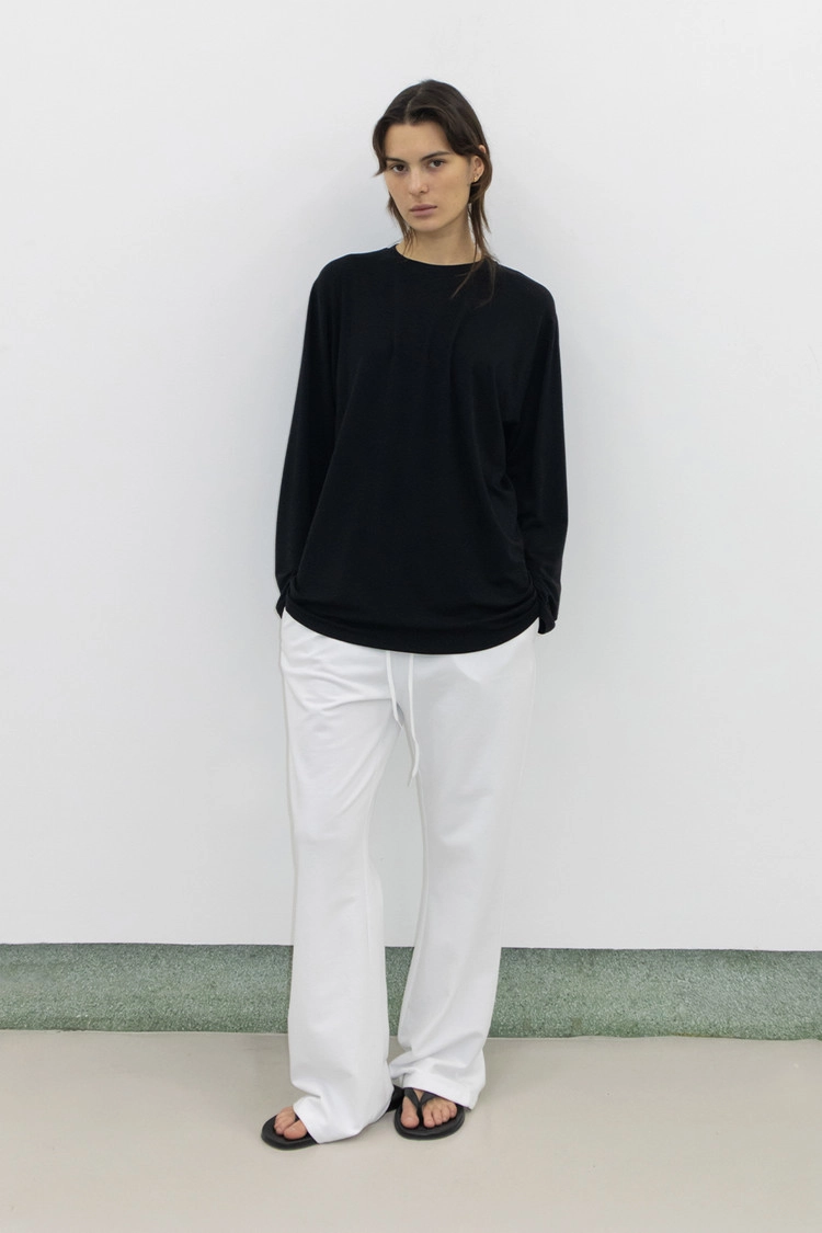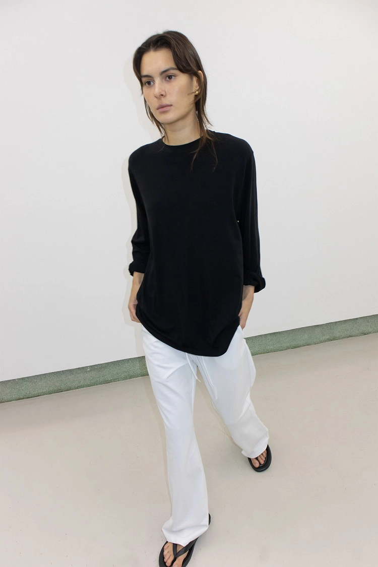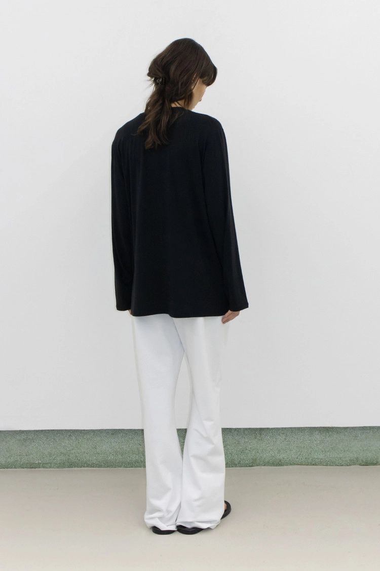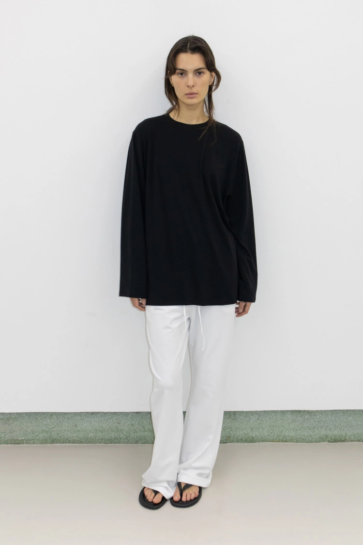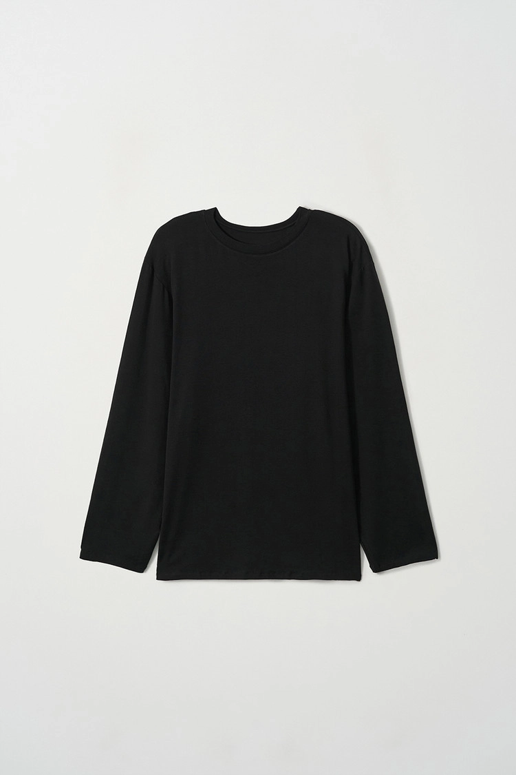 LONG SLEEVE BOYFRIEND JERSEY TOP - BLACK