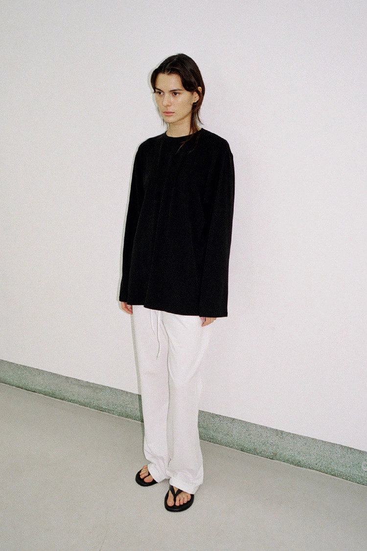 부드러운 텐셀과 신축성 있는 스판이 함유된 소재로 제작된 롱 슬리브 저지 탑