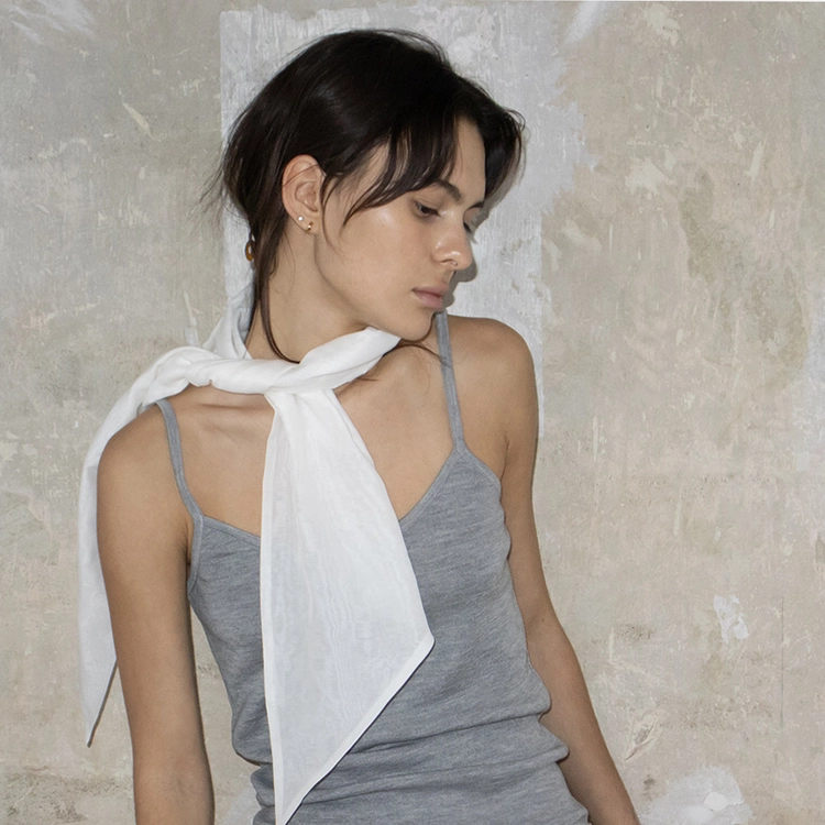 가볍고 부드러운 터치감의 실크·코튼 블렌드 소재로 제작된 스카프