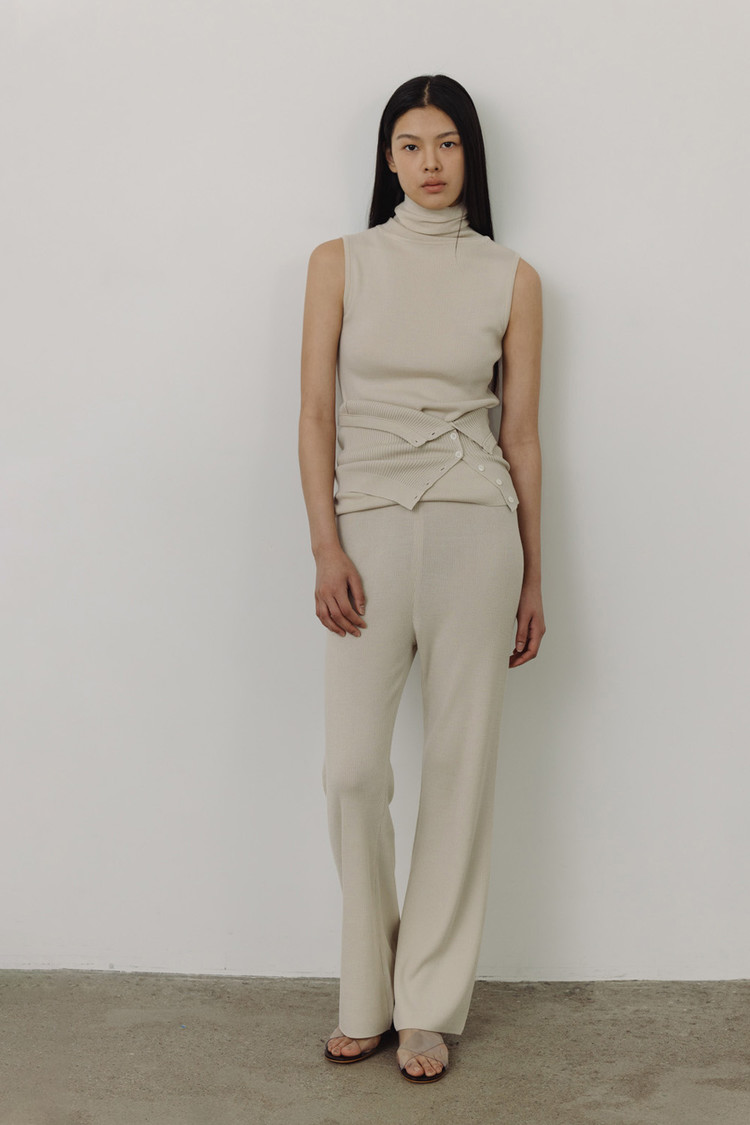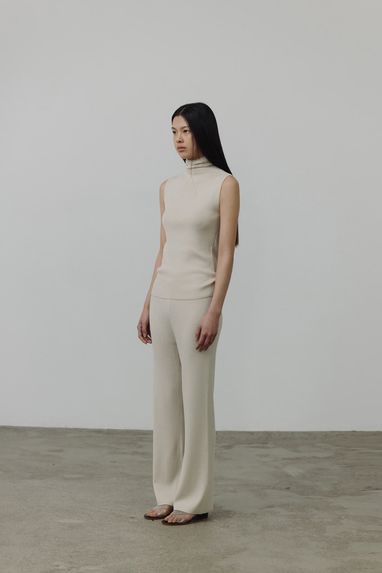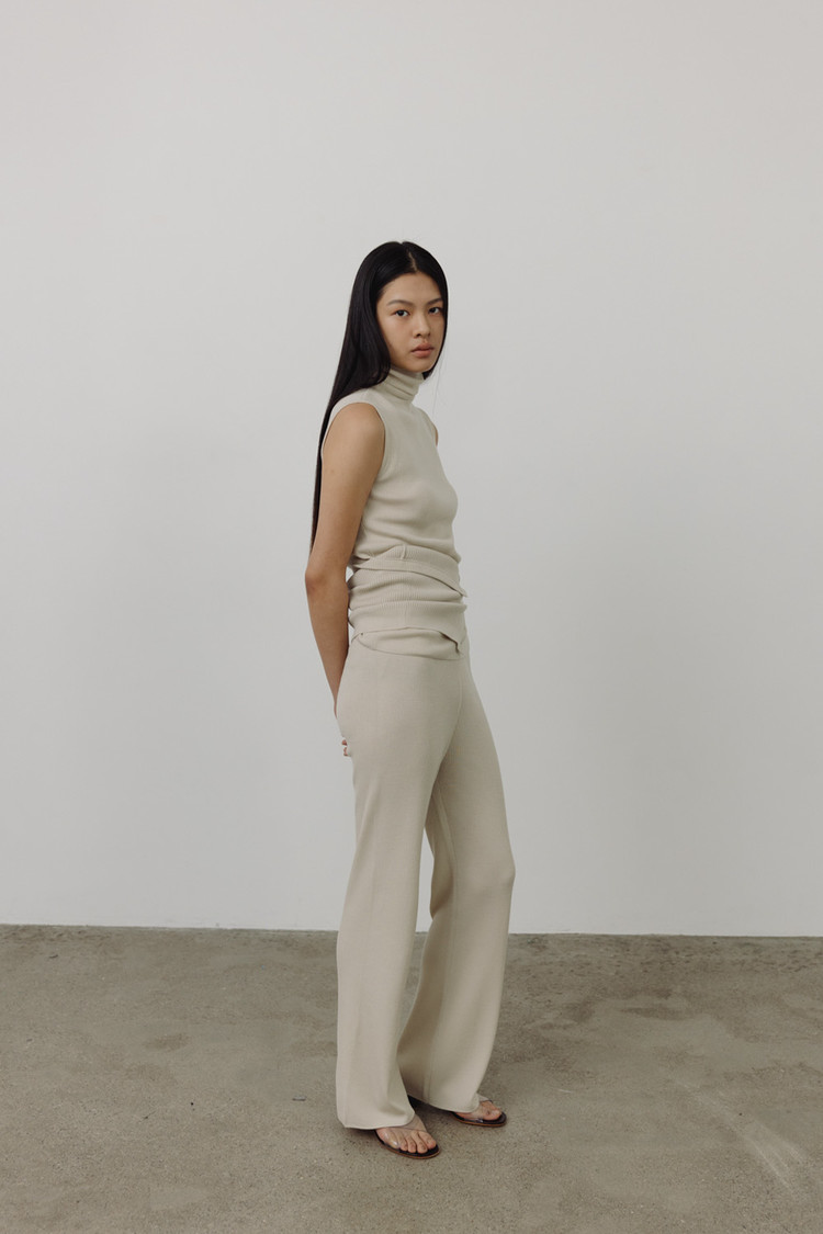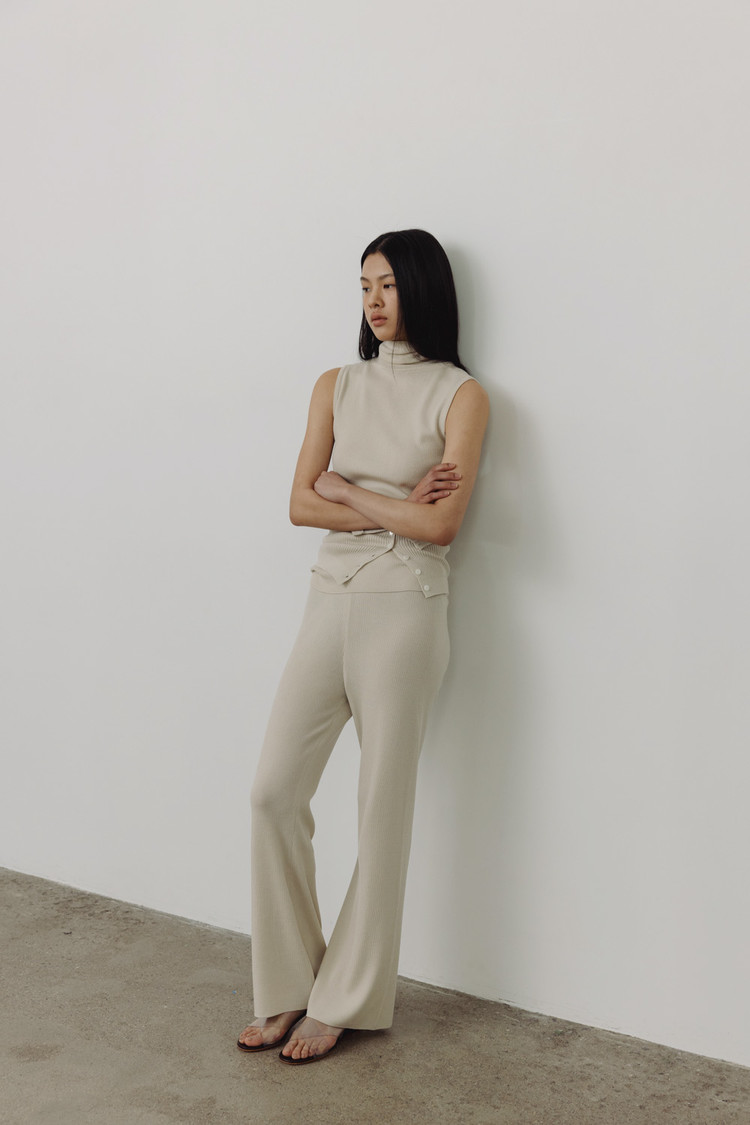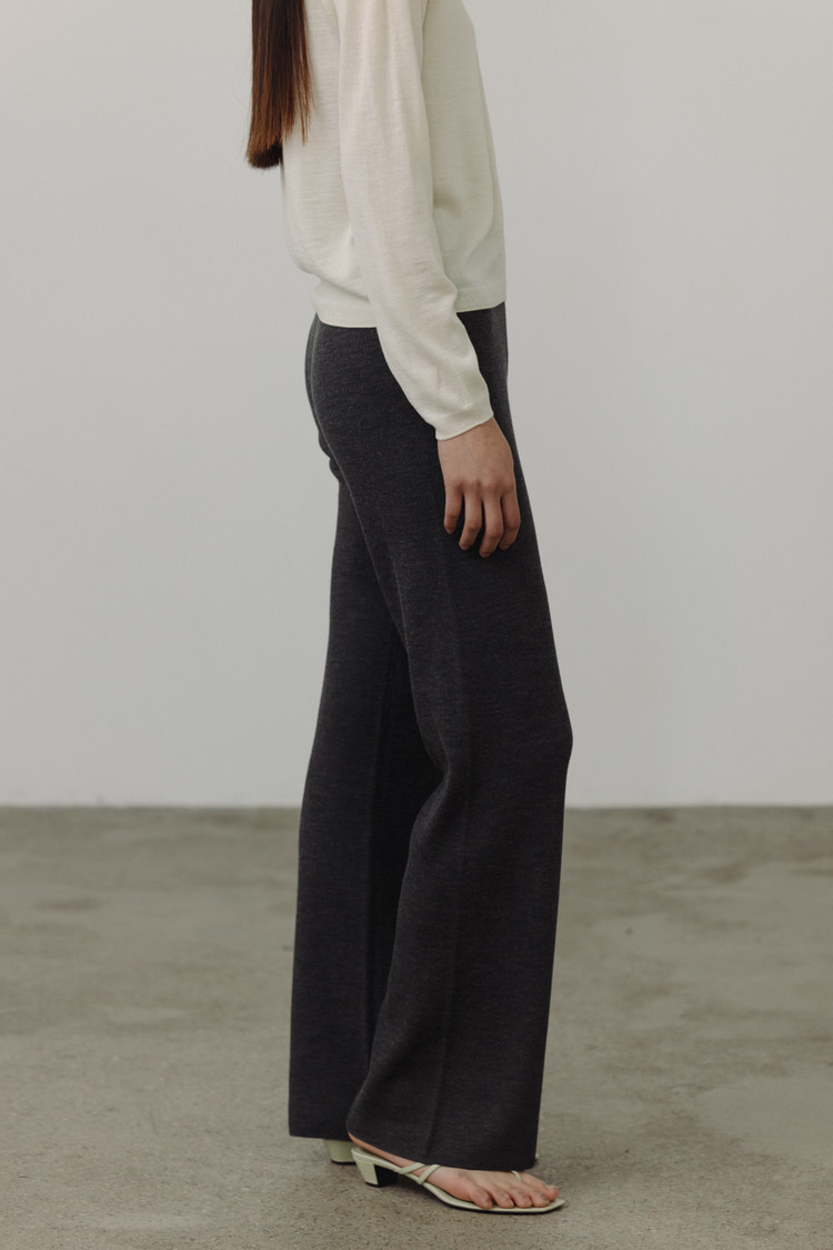 [ESSENTIALS] SEMI FLARED RIB KNIT PANTS