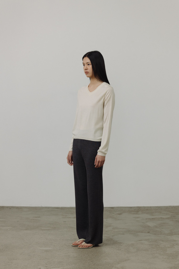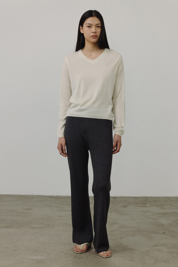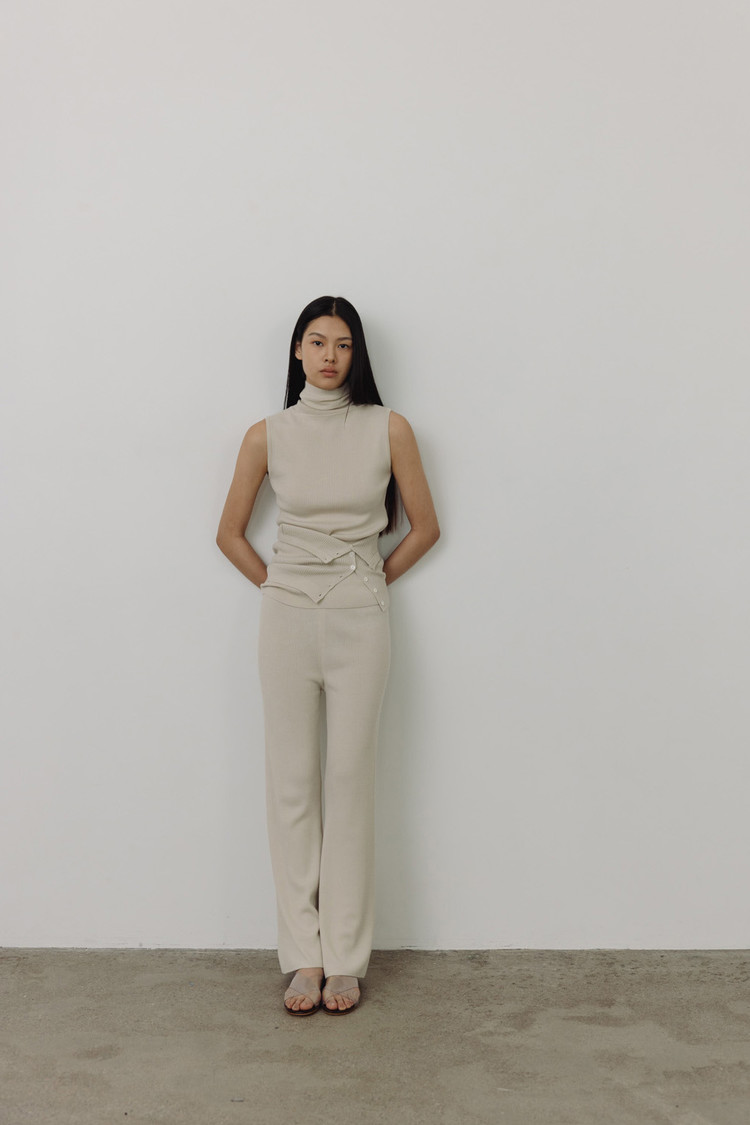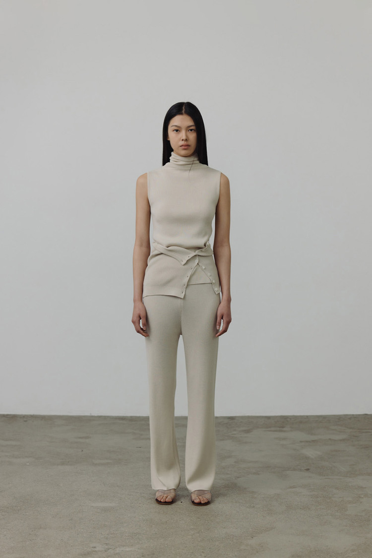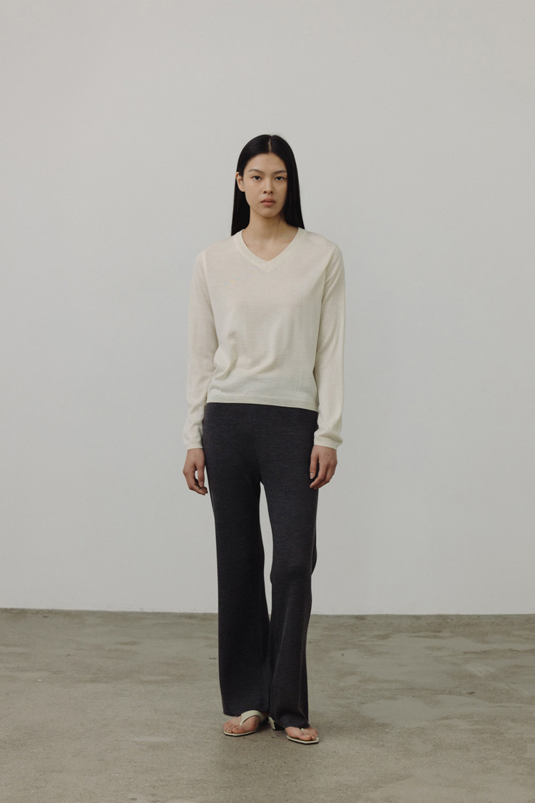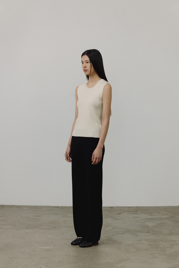 [ESSENTIALS] SEMI FLARED RIB KNIT PANTS