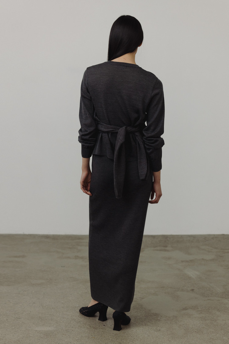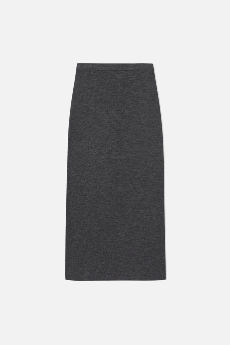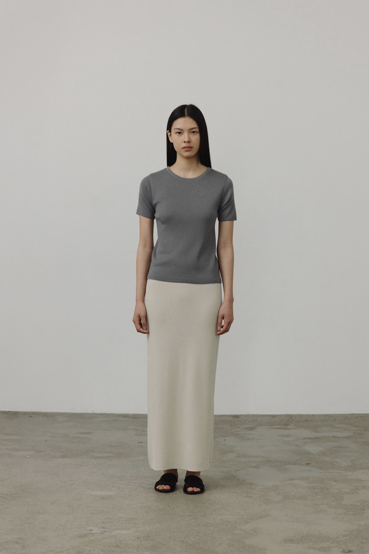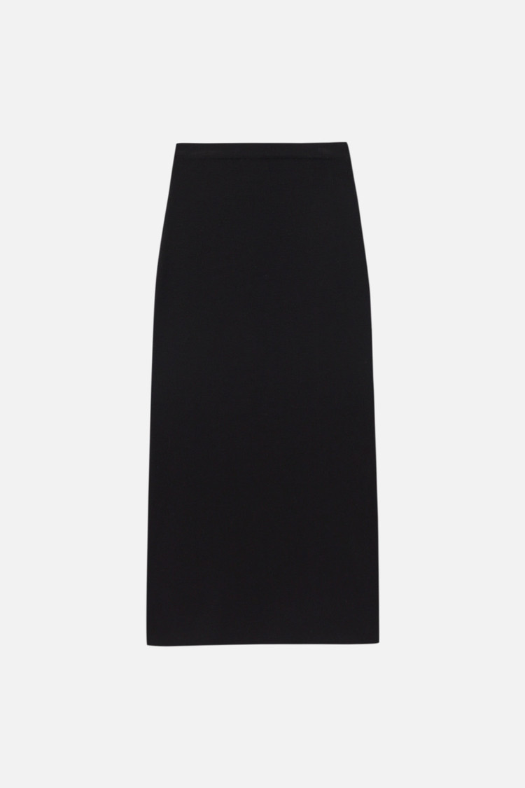 맥시한 기장감과 미니멀한 H 라인 실루엣이 정제된 무드를 자아내는 니트 스커트입니다.